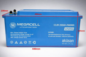 Megacell Lityum Demir Fosfat Akü 12,8 V 200 Ah LiFePO4