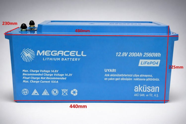Megacell 12,8 V 200 Ah LiFePO₄ Akü Teknik Özellikleri