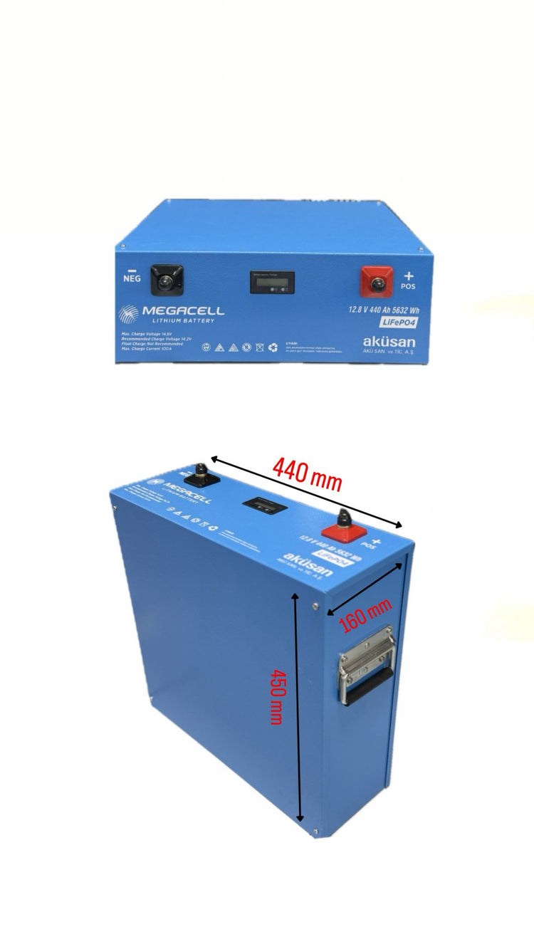 Megacell 12.8V 300 Ah LiFePO₄ akü; uzun ömürlü, hafif ve güvenli yapısıyla solar sistemler, karavanlar ve yedek enerji çözümleri için ideal bir güç kaynağıdır.